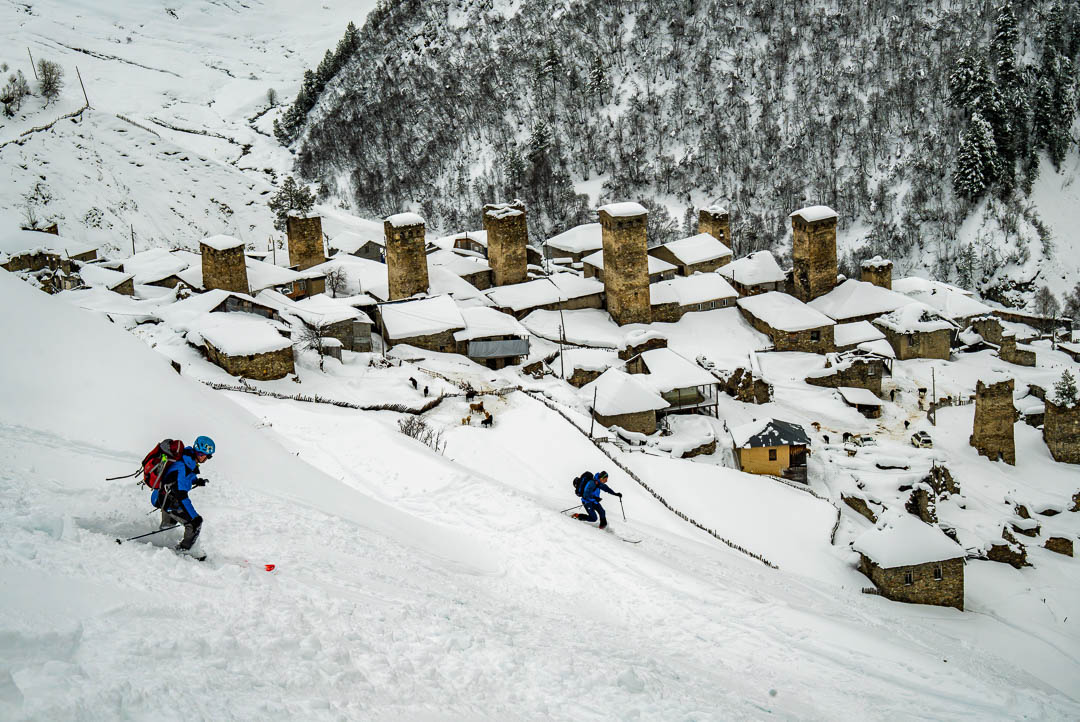 Ushguli Village - Ski touring holiday in Caucasus Mountains of Georgia with Giorgio Daidola, Cristina Franceschini, Roberto Scala, and Carmelo Anderle. Driver/guide Guram Alapishvili (Guro). Ushguli