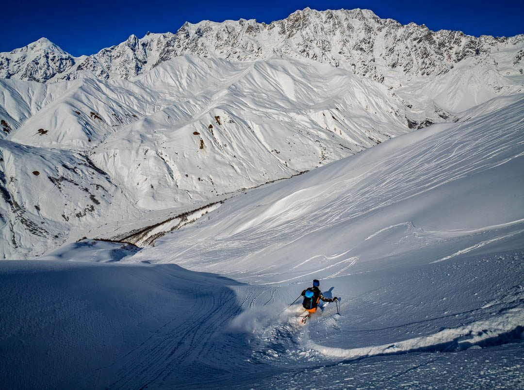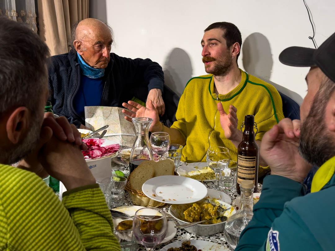 Days unfolded alongside old, legendary friend Giorgio Daidola, still charging 1000-metre backcountry ski days into his eighties, and among the region’s quietly charismatic street dogs—products of a humane tag-neuter-vaccinate system—drifting between cafés, ski tracks, and villages with him, Cristina, Carmelo and Roberto. Special thanks to Guro Alaphishvili for your entertaining, informative guidance.