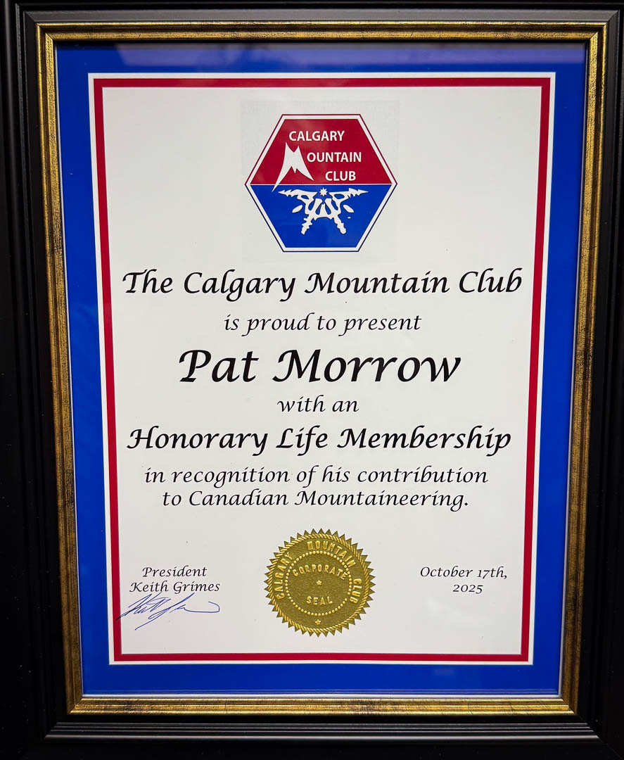 On the occasion of the Calgary Mountain Club’s 65th anniversary, Laurie Skreslet and i were honoured with lifetime memberships. As teenagers, we had joined the CMC within months of each other, 55 years ago.